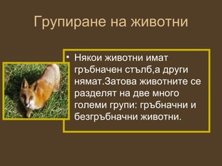 бозайници.Животните от всяка група