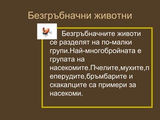 • Безгръбначните животи