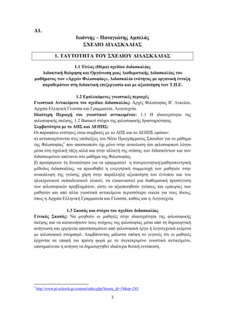1. ΤΑΥΤΟΤΗΤΑ ΤΟΥ ΣΧΕΔΙΟΥ ΔΙΔΑΣΚΑΛΙΑΣ