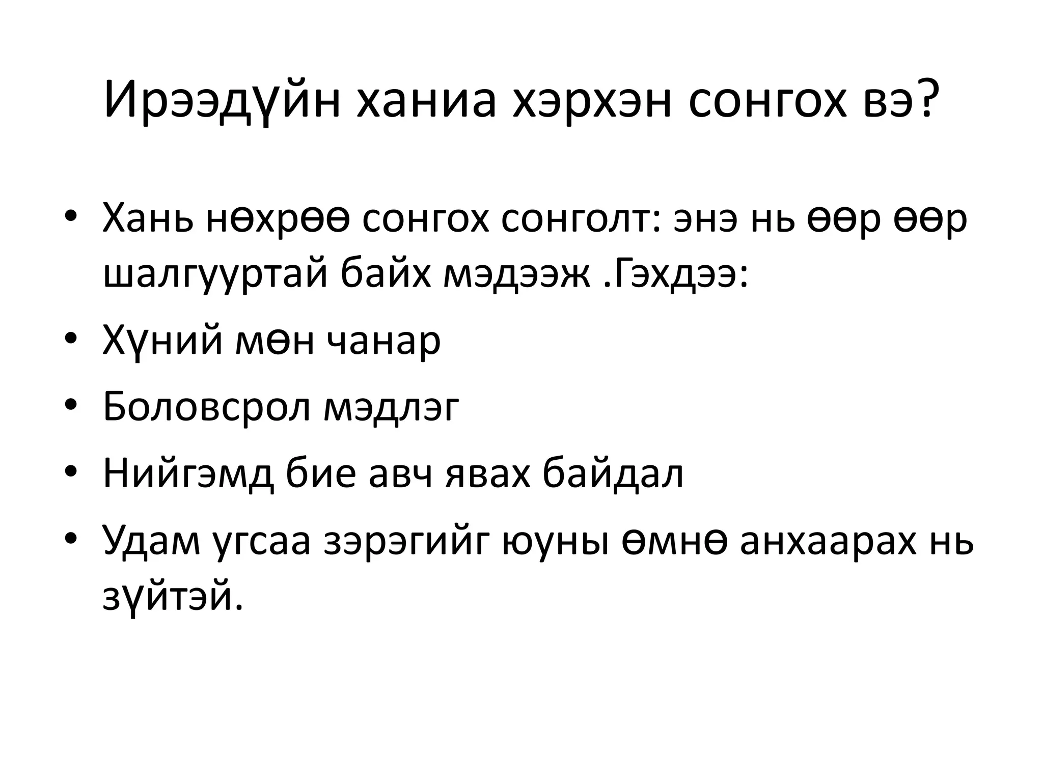 ирээдүйн ханиа хэрхэн сонгох вэ