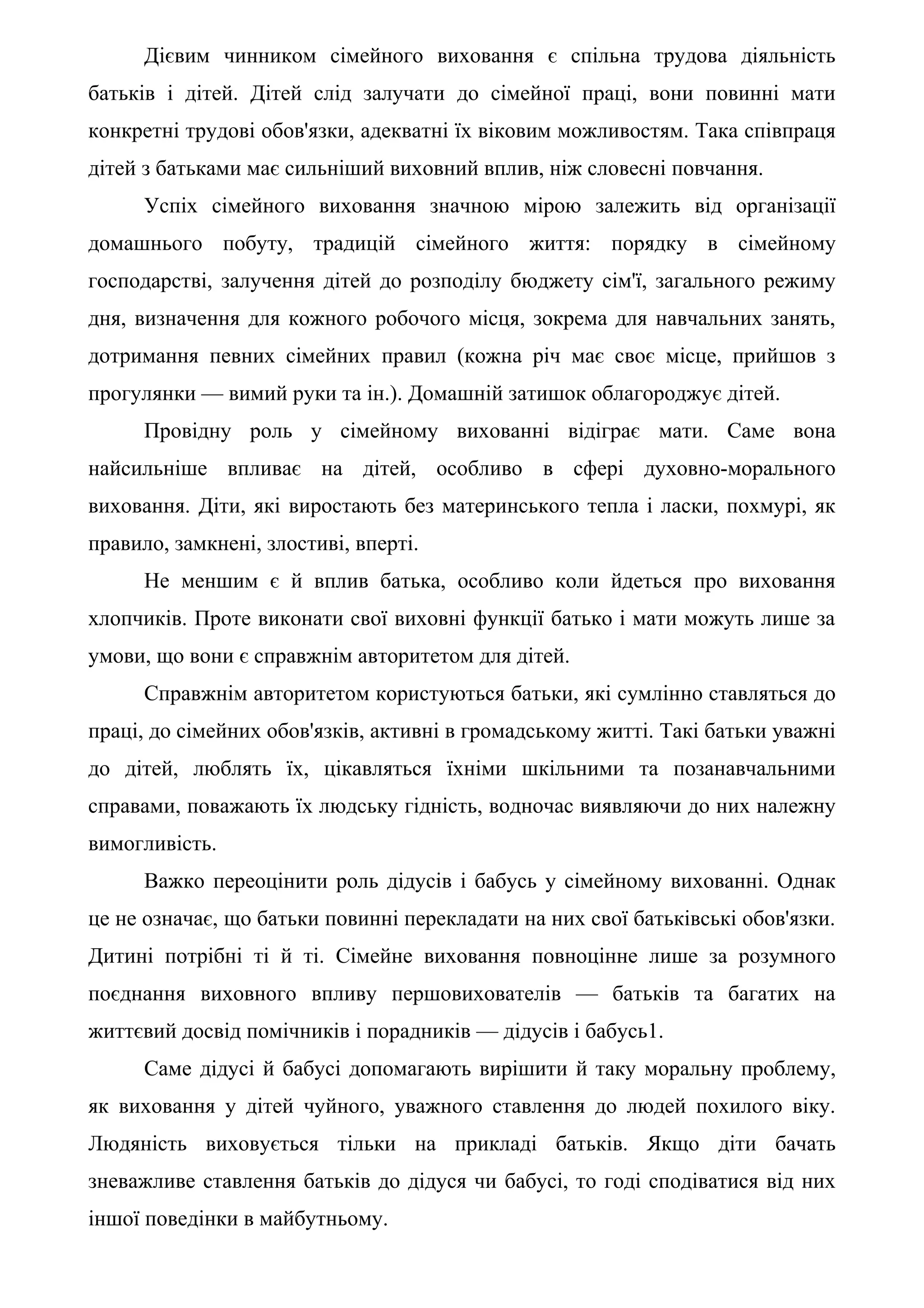 батьків і дітей. Дітей слід залучати до сімейної праці, вони повинні мати