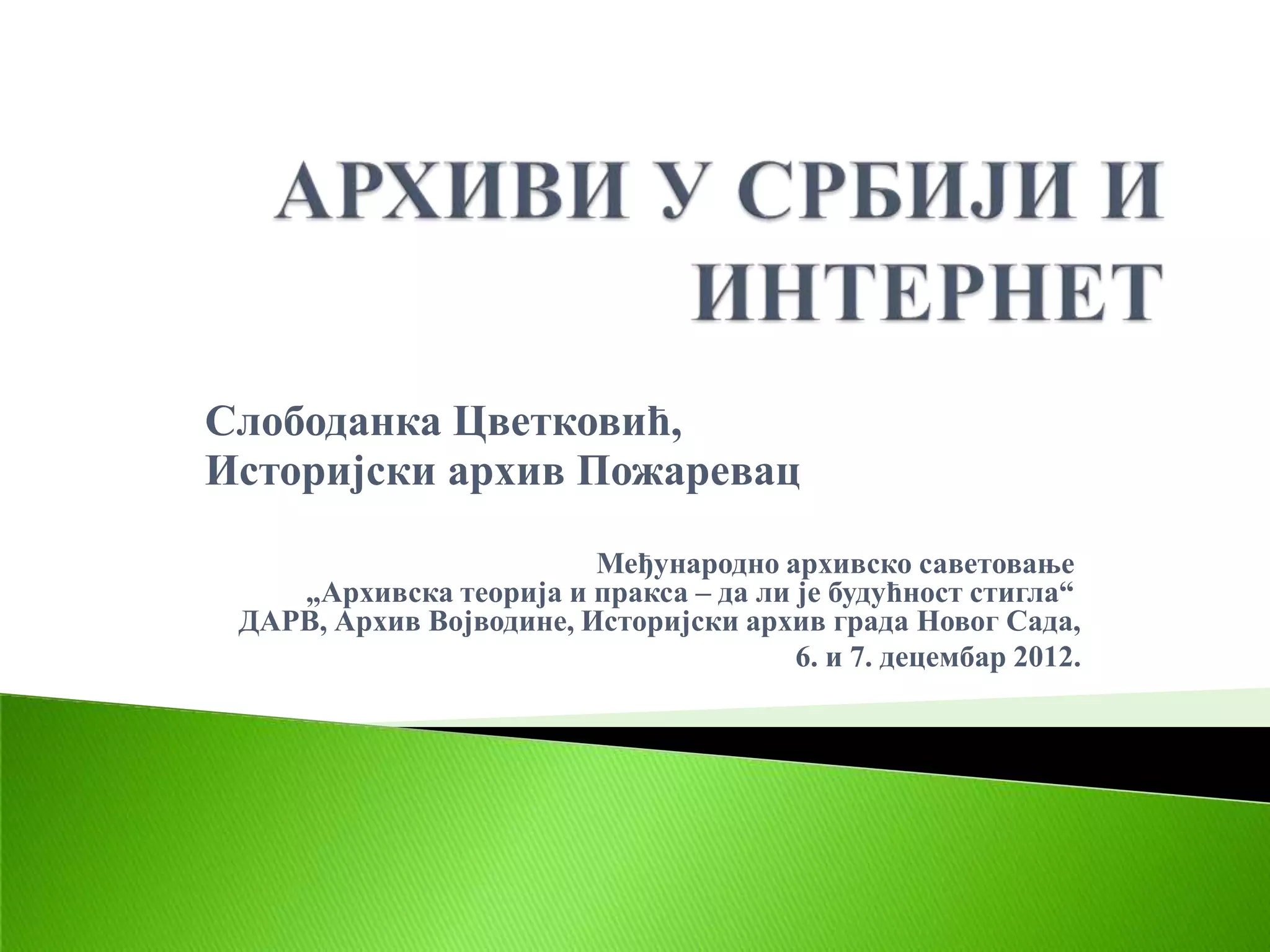 •Недовољно присуствосрпских архива на Глобалној мрежи