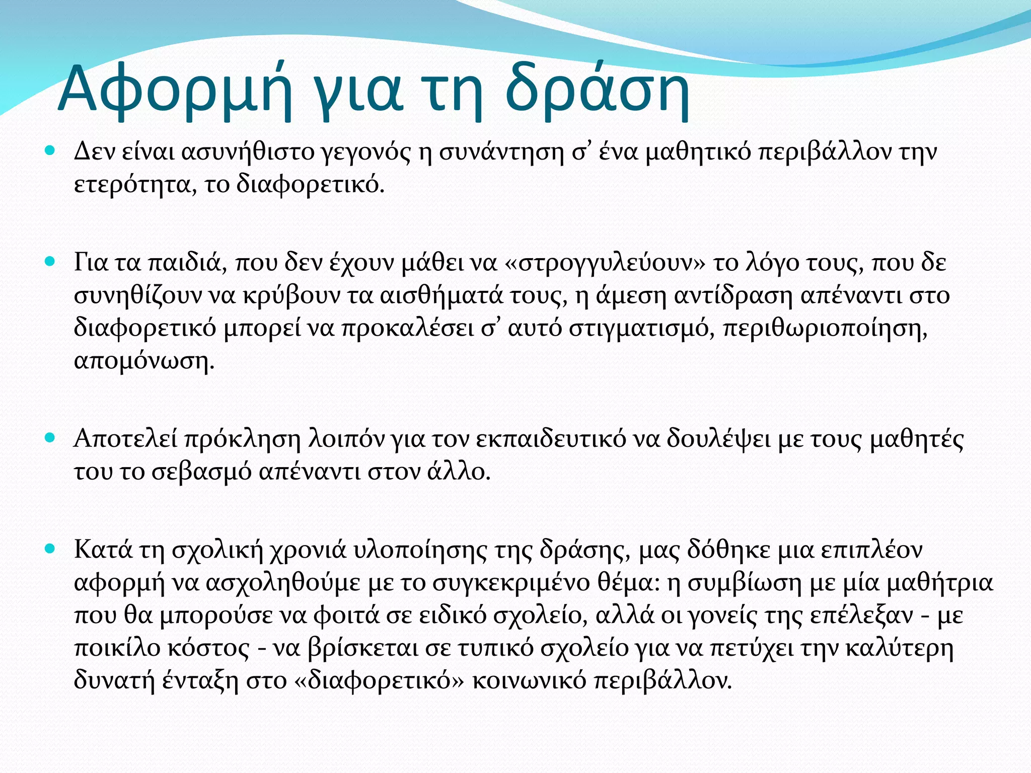 Κατά τη σχολική χρονιά υλοποίησης της δράσης, μας δόθηκε μια επιπλέον