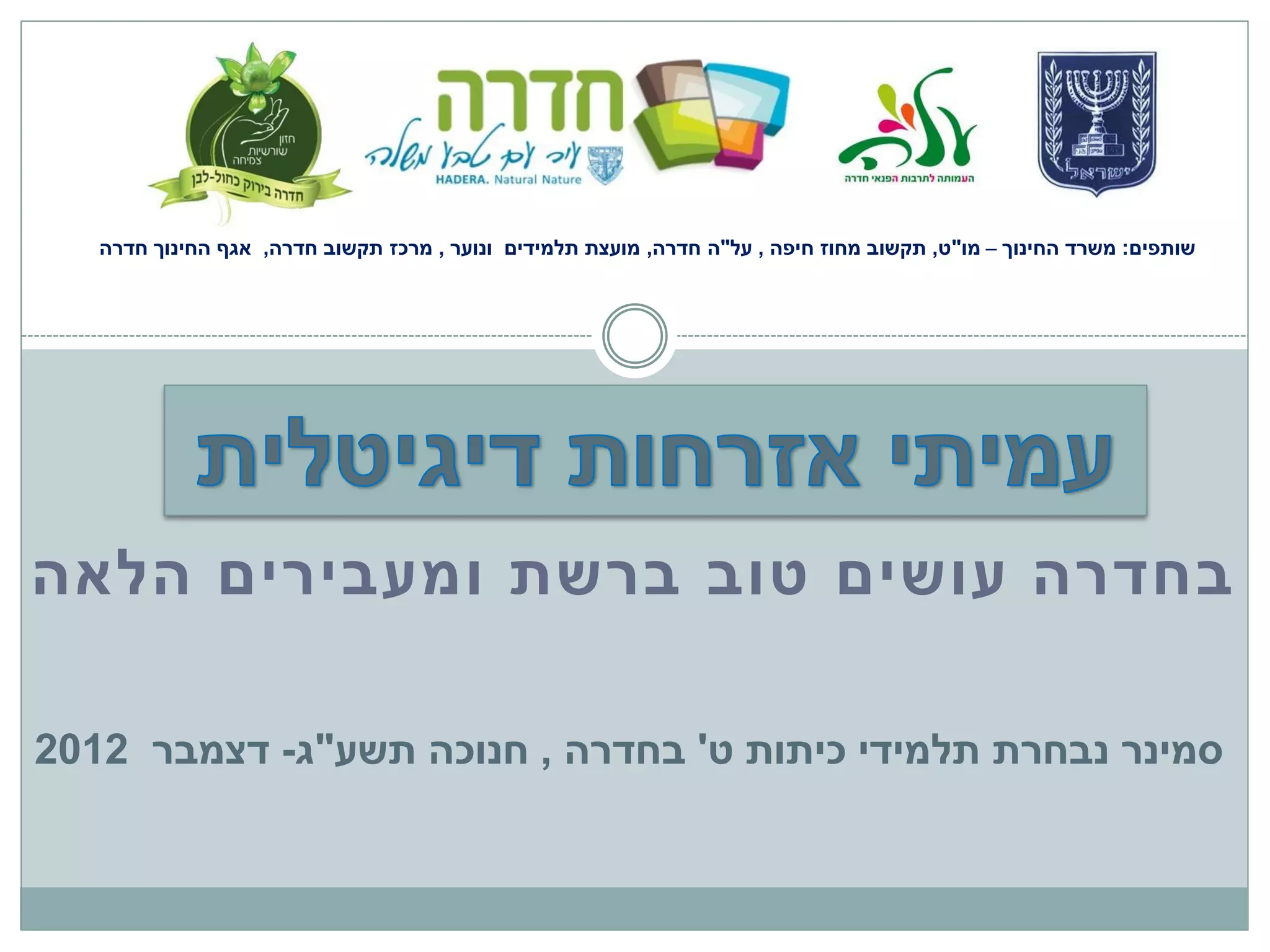 שותפים: משרד החינוך– מו"ט, תקשוב מחוז חיפה , על"ה חדרה, מועצת תלמידים ונוער , מרכז תקשוב חדרה, אגף החינוך חדרה