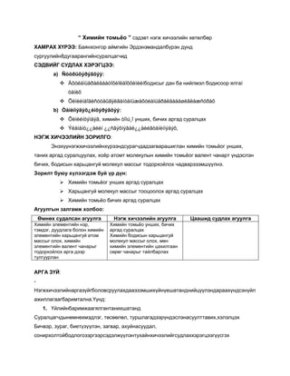 химийн томьёо нэгж хичээл