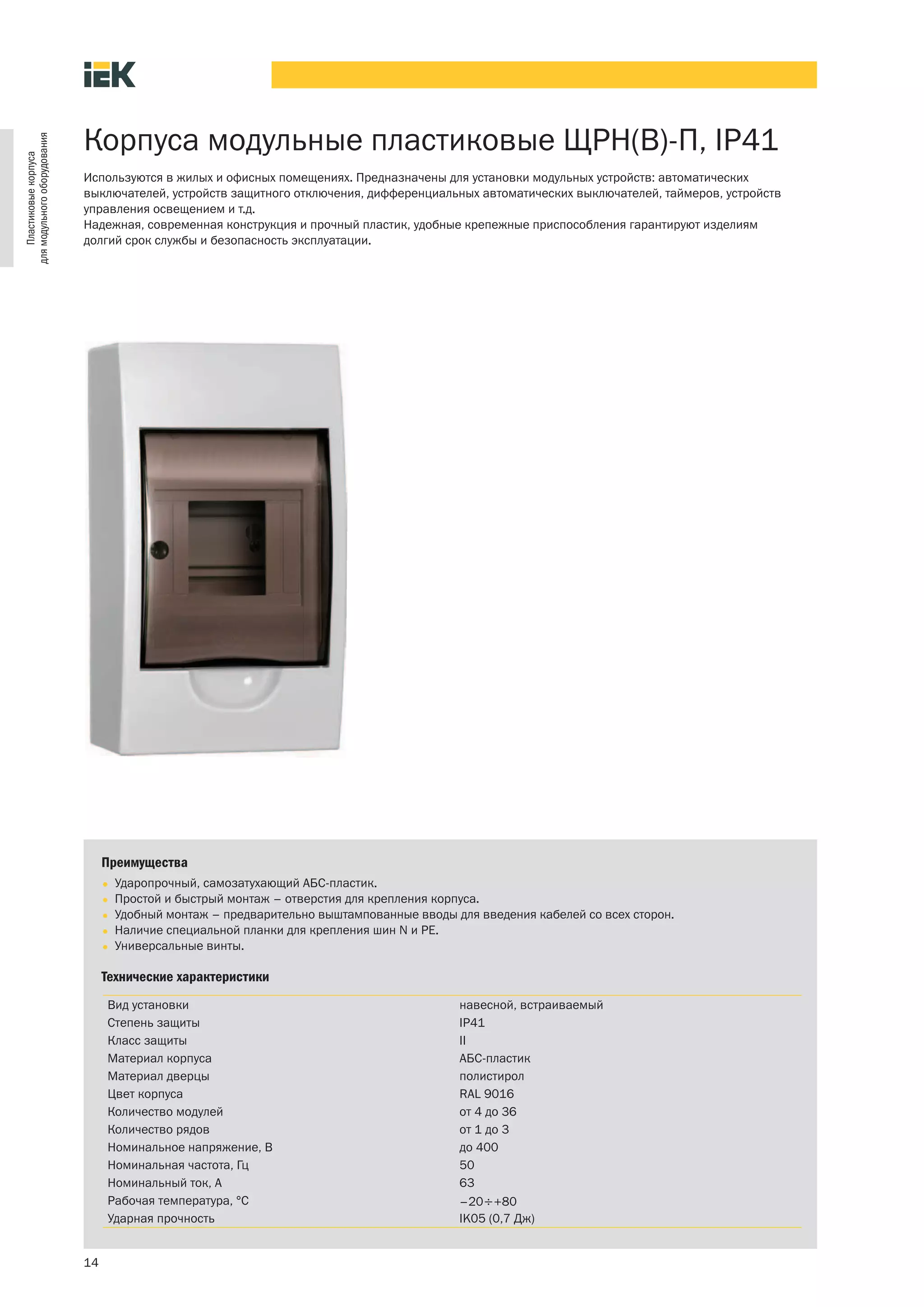 Модульные пластиковые корпуса щрн(в)-п, ip41 предназначены для установки модульного электрооборудования в жилых и офисных помещениях. Они обеспечивают надежность и простоту монтажа благодаря ударопрочному ABS-пластику и удобным крепежным приспособлениям. Документ также содержит информацию о технических характеристиках, размерах и комплектации различных модификаций корпусов.