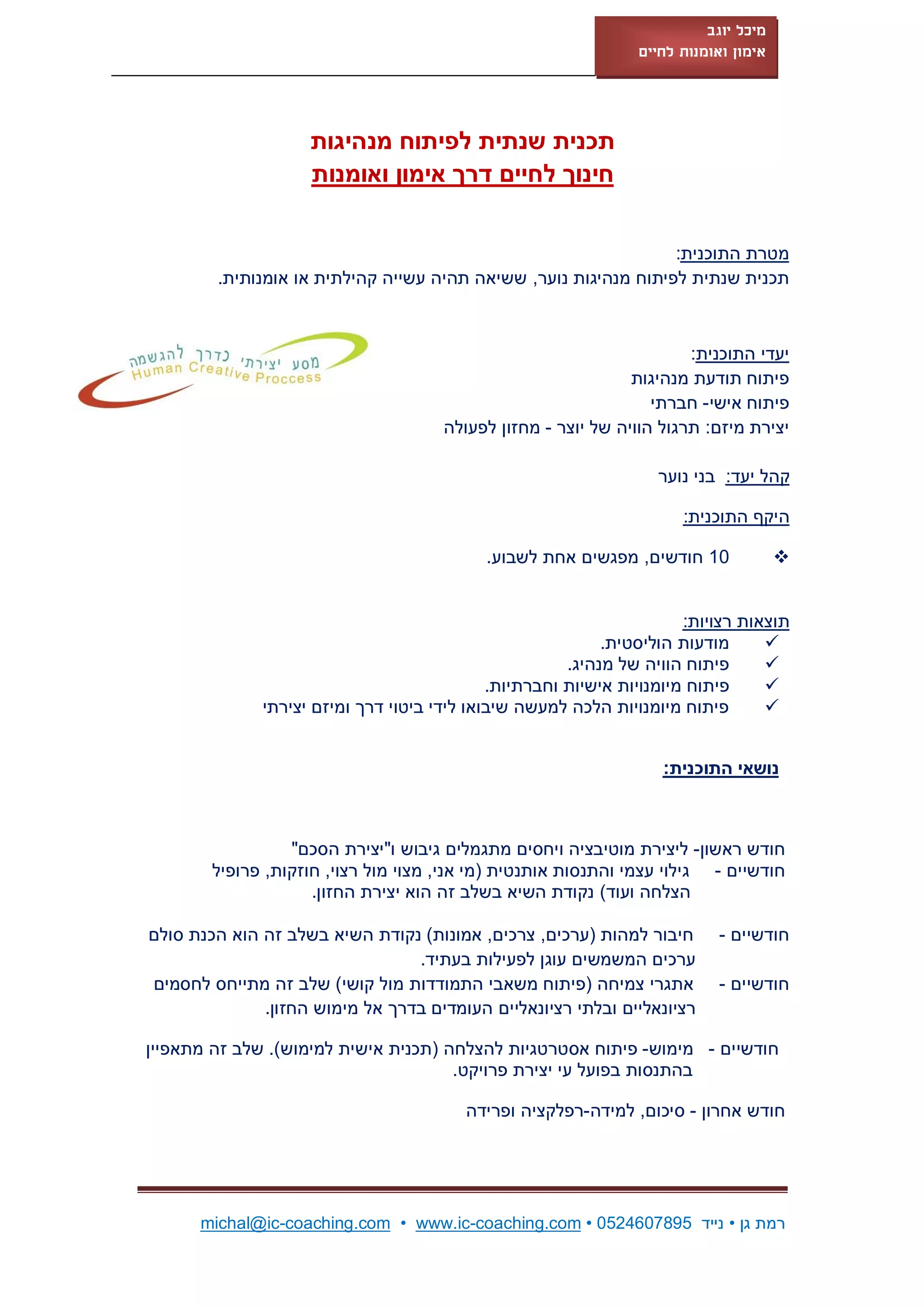 רמת גן • נייד 5987064250 • michal@ic-coaching.com • www.ic-coaching.com