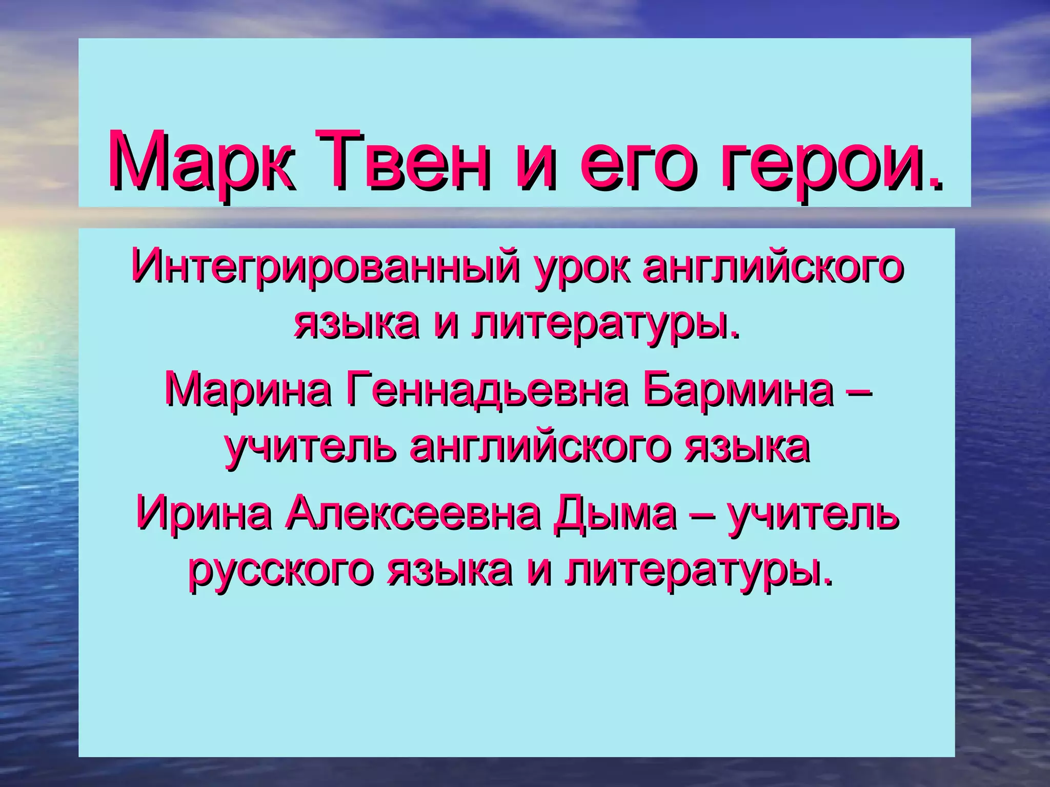 Документ представляет собой интегрированный урок английского языка и литературы, посвященный Марку Твену и его героям, с акцентом на 'Приключения Тома Сойера' и 'Приключения Гекльберри Финна'. Урок включает задания для студентов на английском и русском языках, а также цитаты известных писателей о влиянии Твена на литературу. В заключение упоминается памятник литературным героям в Ганнибале, созданный скульптором Фредериком Хиббардом.