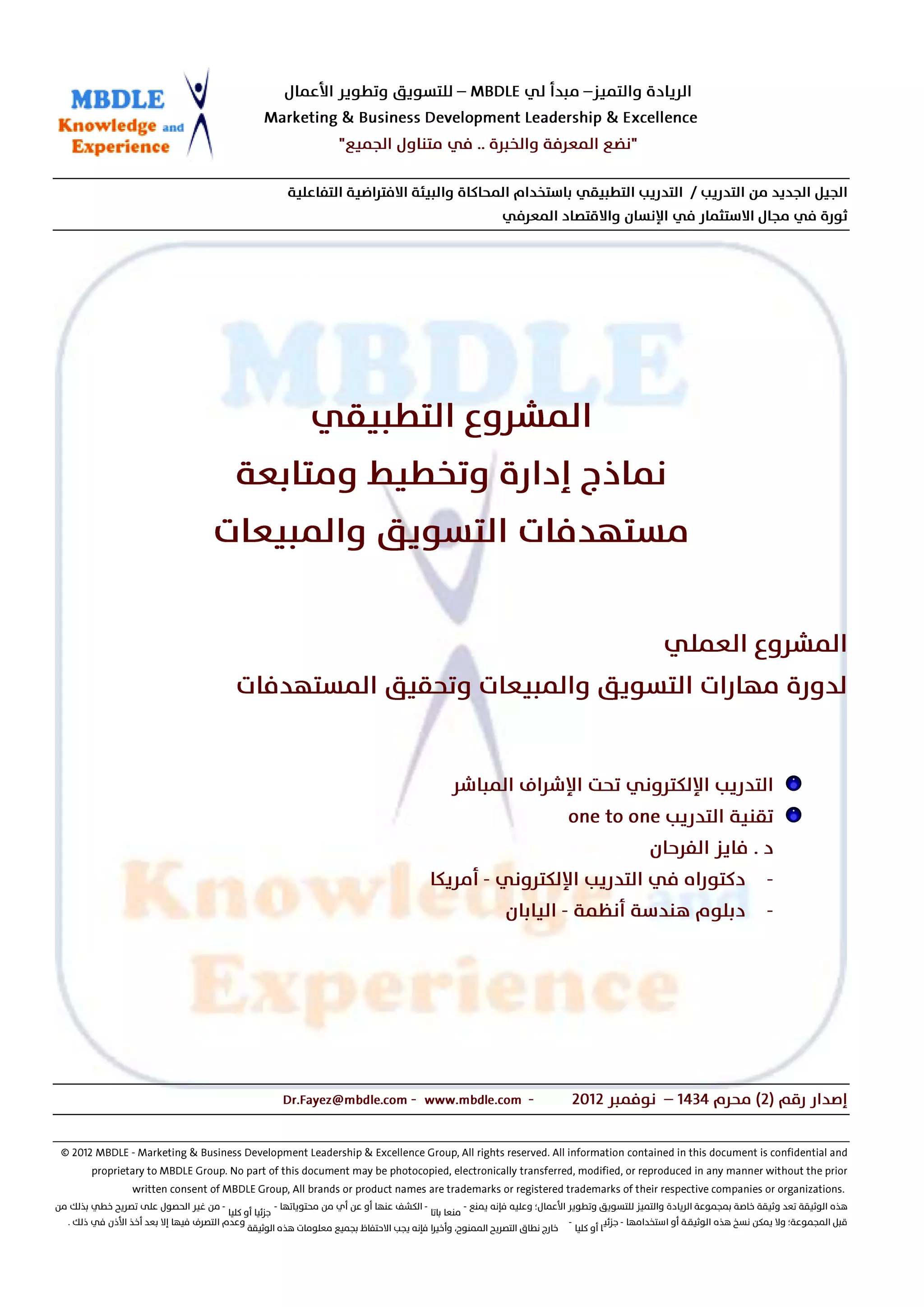 تتناول الوثيقة نماذج إدارة تخطيط مستهدفات التسويق والمبيعات، مع التركيز على مبدأ مجموعة الريادة ومشروع التدريب التطبيقي باستخدام المحاكاة والبيئة الافتراضية. الوثيقة تُبرز أهمية القيادة والتميز في التسويق وتطوير الأعمال. تتضمن معلومات حول كيفية تحسين الاستراتيجيات وتطبيقها بطريقة فعالة.
