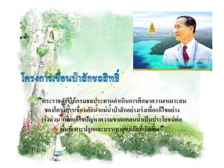 พระบาทสมเด็จพระเจ้ าอยู่หัวได้ ทรงพระราชดารัสเนื่องในวโรกาสวันเฉลิมพระชนมพรรษา เมือ ่ วันที่ 4 ธันวาคม พ.ศ. 2536 ว่ า “… ปัญหาเรื่องภัยแล้งนีจะเป็ นปัญหาที่แก้ไม่ ได้ และหมู่นีกพูดกันอย่ างเสีย ้ ้็ ขวัญเสียว่ าอีกหน่ อยต้องปันส่ วนนาหรือต้ องตัดนาประปา อันนีสาหรับกรุงเทพฯ ดังนั้น ต้ องหาแนวทางแก้ไข ้ ้ ้ ซึ่งปัญหานีต้องวางแผนมาเป็ นเวลาหลายปี แล้ว ถ้ าหากว่ าได้ ปฏิบตในวันนี้ เราก็ไม่ ต้องพูดถึงการขาดแคลนนา ้ ั ิ ้ โครงการโดยเฉพาะนั้นก็มี และโครงการนั้นได้ ยนยันมาเมือเดือนกว่ าแล้วทีนราธิวาส ได้ วางโครงการและแม้ ื ่ ่ เป็ นโครงการทีไม่ ได้ แก้ปีนี้ หรือปี หน้ า แต่ ถ้าทาอย่ างไรดีประมาณ 5 หรือ 6 ปี ปัญหานาขาดแคลนในกรุงเทพฯ ่ ้ จะหมดไปโดยสิ้นเชิง อาจจะนึกว่ า 5-6 ปี นั้นนาน ความจริงไม่ นานและระหว่ างนีเ้ ราก็พยายามแก้ไขเฉพาะ หน้ าไปเรื่อย แต่ ถ้ามีความหวังว่ า 5-6 ปี ปัญหานีคงหมดไปก็คงมีกาลังใจทีจะฟันฝ่ าชีวตต่ อไป ้ ่ ิ •