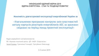 супроводжувати безпечну експлуатацію корпусів реакторів на строк понад