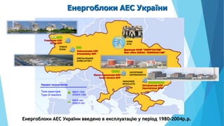 Енергоблоки АЕС України введено в експлуатацію у період 1980-2004р.р.