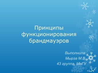 Документ описывает принципы работы брандмауэров (firewall), их важность для защиты компьютерных сетей от хакеров и вредоносных программ. Он подробно рассматривает свойства, категории, достоинства и недостатки брандмауэров, а также важность разработки корпоративной политики санитарной безопасности и контроля за действиями системы. Заключение подчеркивает, что безопасность системы — это непрерывный процесс, требующий внимания пользователей к своим действиям.