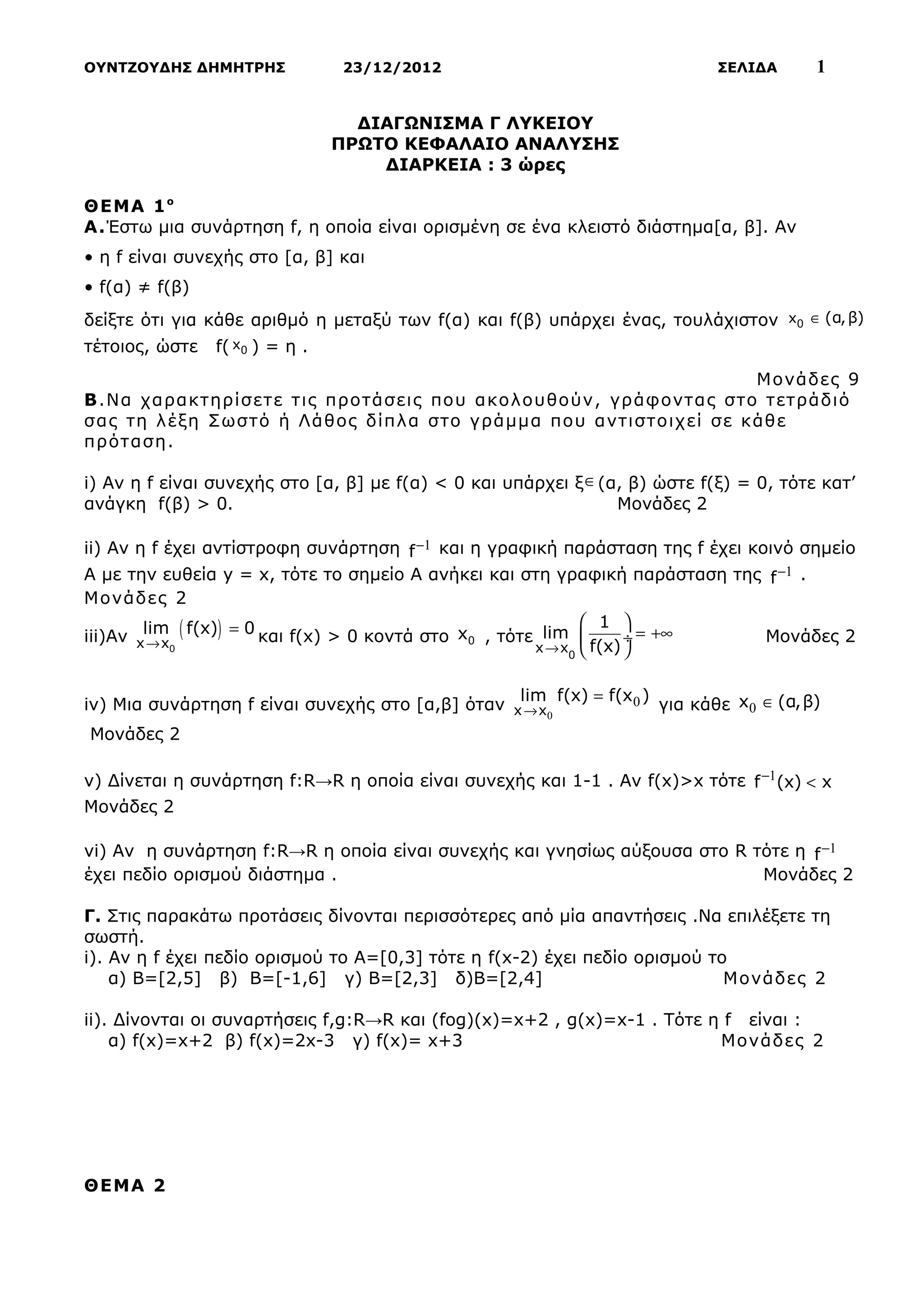 ανάγκη f(β) > 0. Μονάδες 2