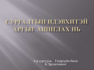 Идэвхтэй сургалтын арга ба явцын үнэлгээ PPTX