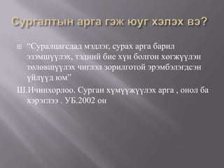Ш.Ичинхорлоо. Сурган хүмүүжүүлэх арга , онол ба