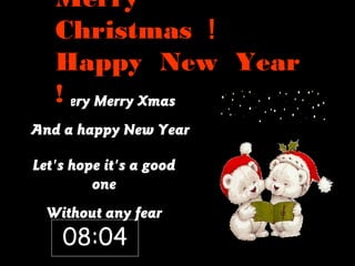 ! Happy New Year A!very Merry Xmas And a happy New Year Let's hope it's a good one Without any fear 08:04