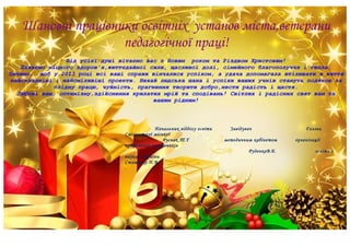 Любові вам, оптимізму,здійснення крилатих мрій та сподівань! Світлих і радісних свят вам та