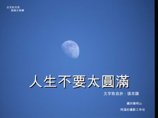 文档探讨了人生不应追求完美的观念,强调每个人的生命都有缺口,这些缺失使我们更懂得珍惜拥有的。通过观察他人和个人经验,作者提到接受生活中的不足能让人更加快乐和谦卑。最终,鼓励人们不要与他人比较,而是感恩自己的现状。