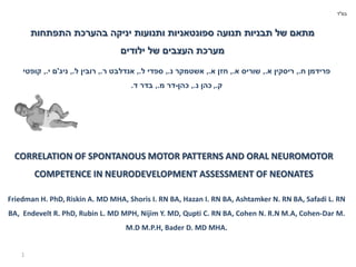 • נבדק מתאם בין איכות של תנועות ספונטאניות של תינוקות למאפיינים של תנועות