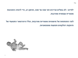 • נמצא שתבניות מוטוריות של הילוד והתינוק משקפות תהליכים התפתחותיים