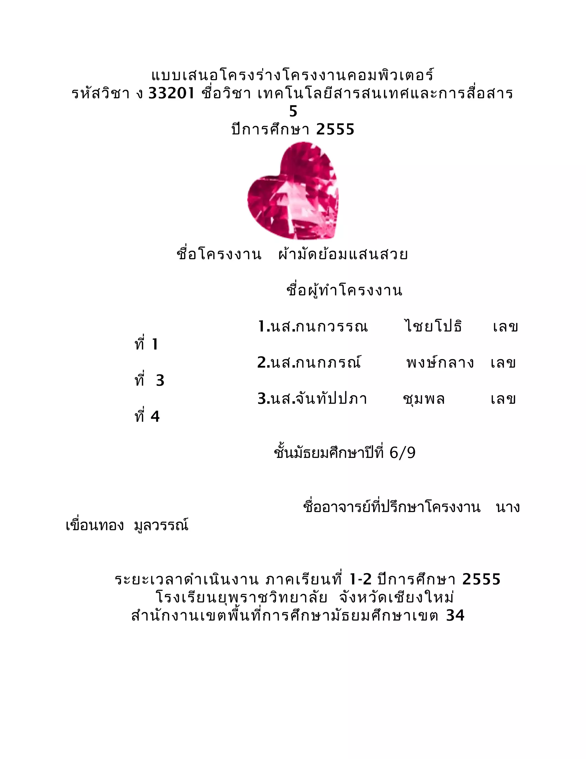 ตัวอย่างการเขียนข้อเสนอโครงงานคอมพิวเตอร์ DOC
