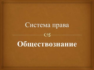 Документ охватывает основные отрасли права и их классификацию, включая материальные и процессуальные, а также специальные и комплексные отрасли. Он объясняет, как права делятся на публичные и частные, в зависимости от интересов, которые они защищают. Кроме того, документ описывает предметы правового регулирования различных отраслей, таких как гражданское, уголовное, трудовое и семейное право.