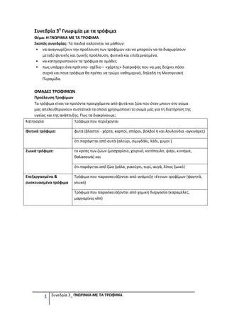 Συνεδρία 3η Γνωριμίαμε τα τρόφιμα