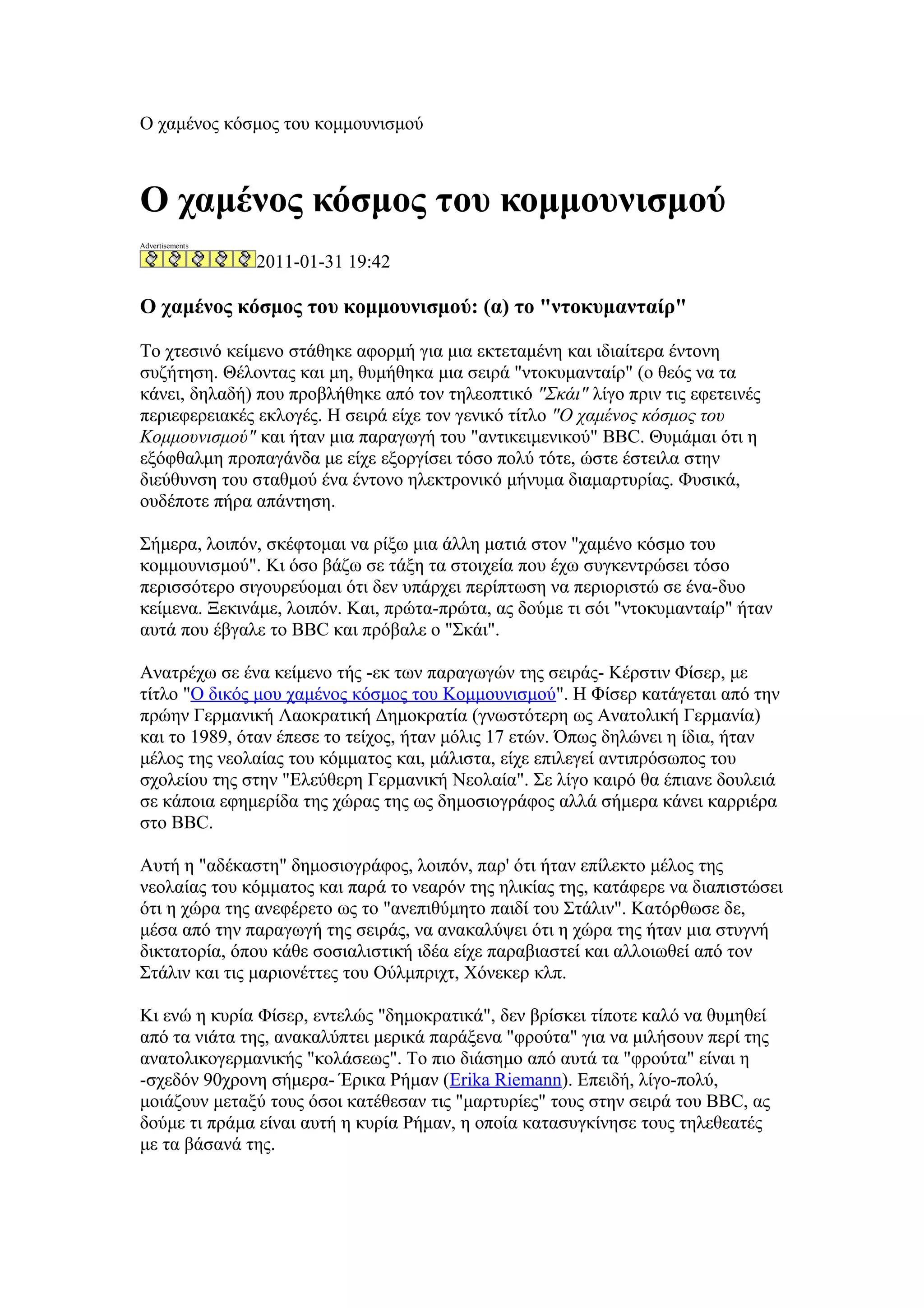Κομμουνισμού" και ήταν μια παραγωγή του "αντικειμενικού" BBC. Θυμάμαι ότι η