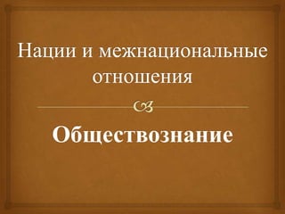 Документ рассматривает исторические формы социальных общностей, включая род, племя, народность и нацию, а также их характеристики и развитие. Основное внимание уделяется влиянию национального самосознания и отношений между нациями на развитие цивилизации. Также рассматриваются национальные интересы, межнациональные конфликты и пути их разрешения с акцентом на необходимость гуманистического подхода.