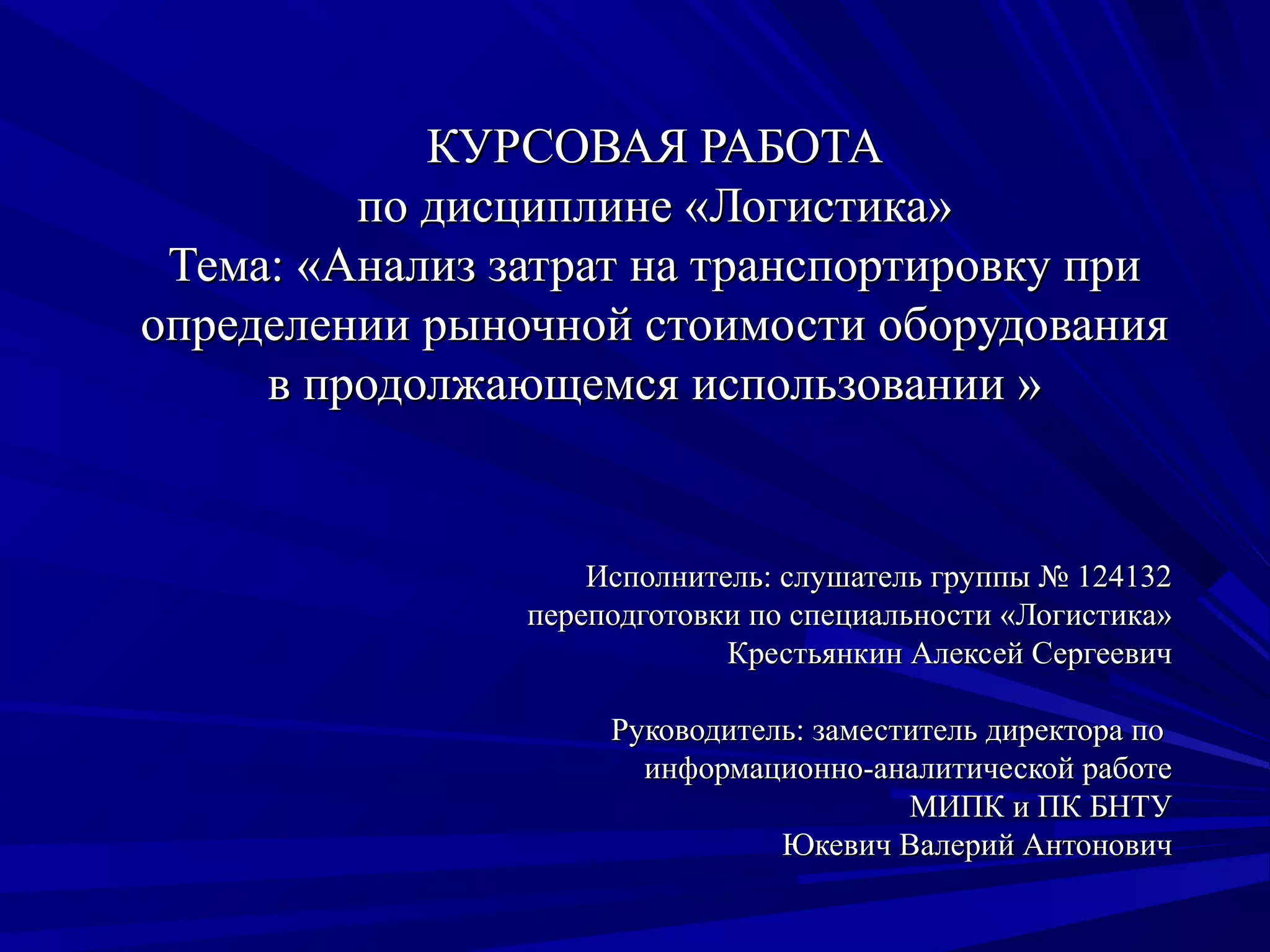 Курсовая работа посвящена анализу затрат на транспортировку при определении рыночной стоимости оборудования в продолжающемся использовании. Основное внимание уделяется факторам, влияющим на выбор вида транспорта и расчету стоимости провозной платы для автомобильного и железнодорожного транспорта, что показывает значительное расхождение в стоимостных показателях. Результаты указывают на то, что транспортные затраты оказывают существенное влияние на общую стоимость объекта оценки.