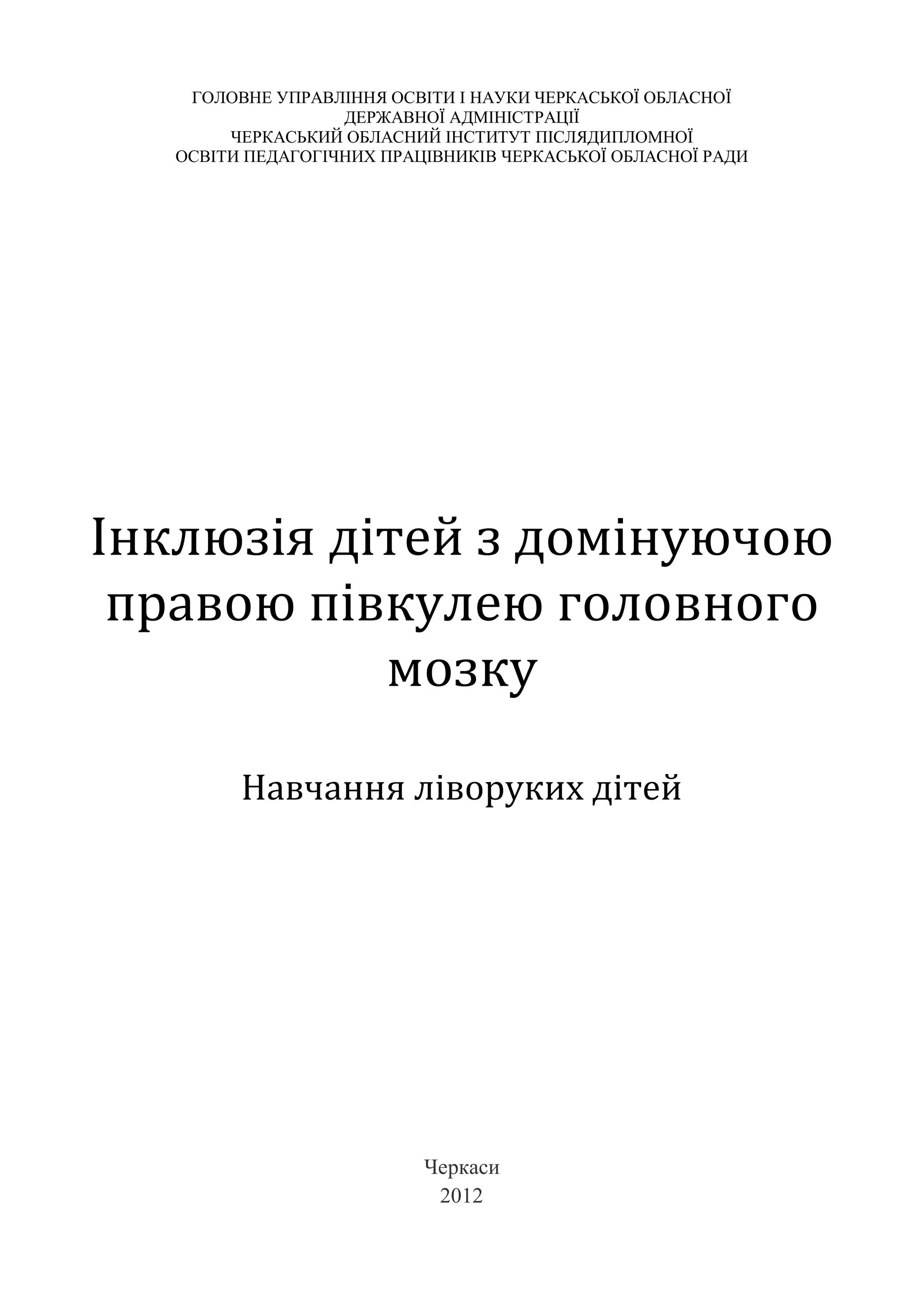 Методичний посібник «Інклюзія дітей з домінуючою правою півкулею