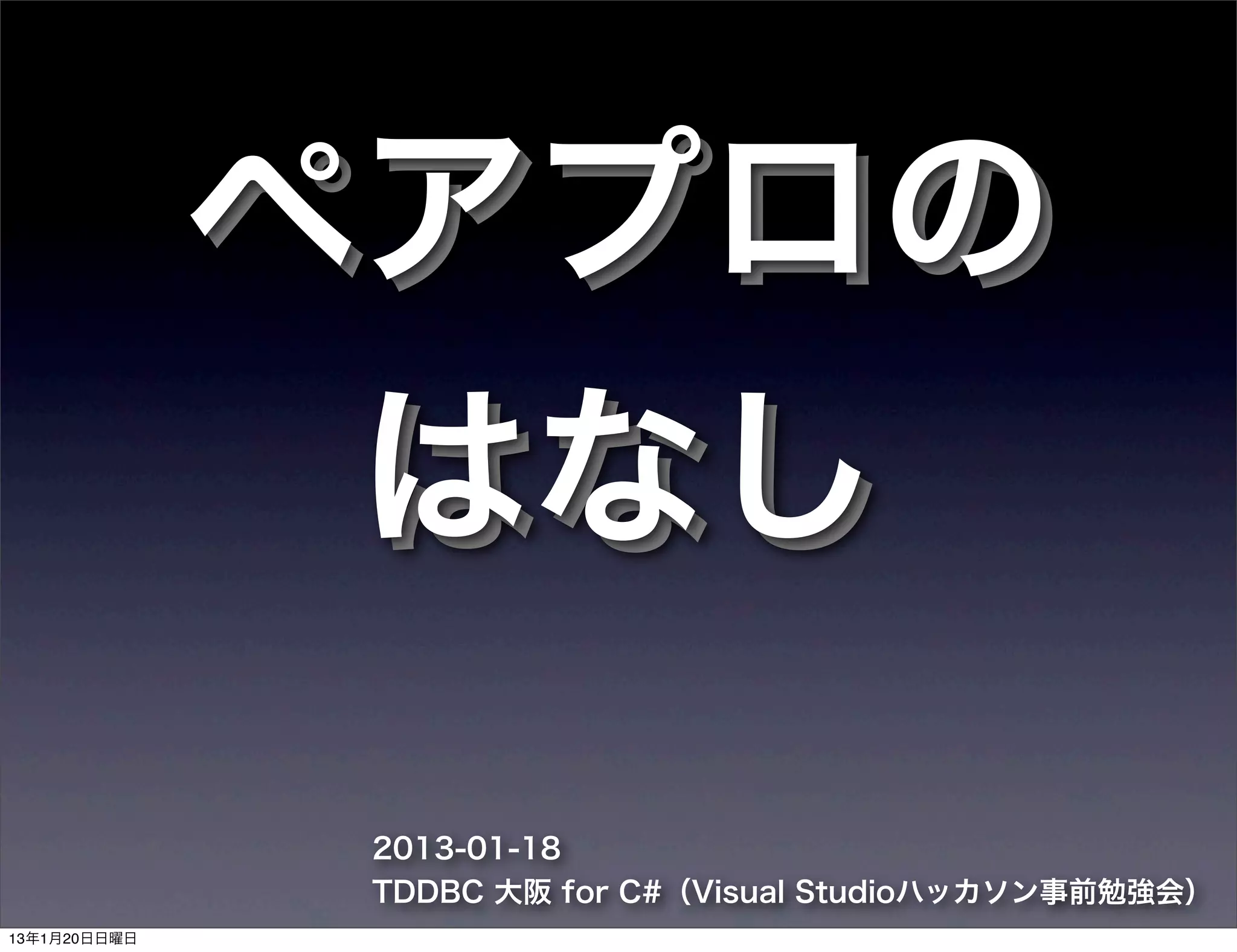 はなし 2013-01-18 TDDBC 大阪 for C#(Visual Studioハッカソン事前勉強会) 13年1月20日日曜日