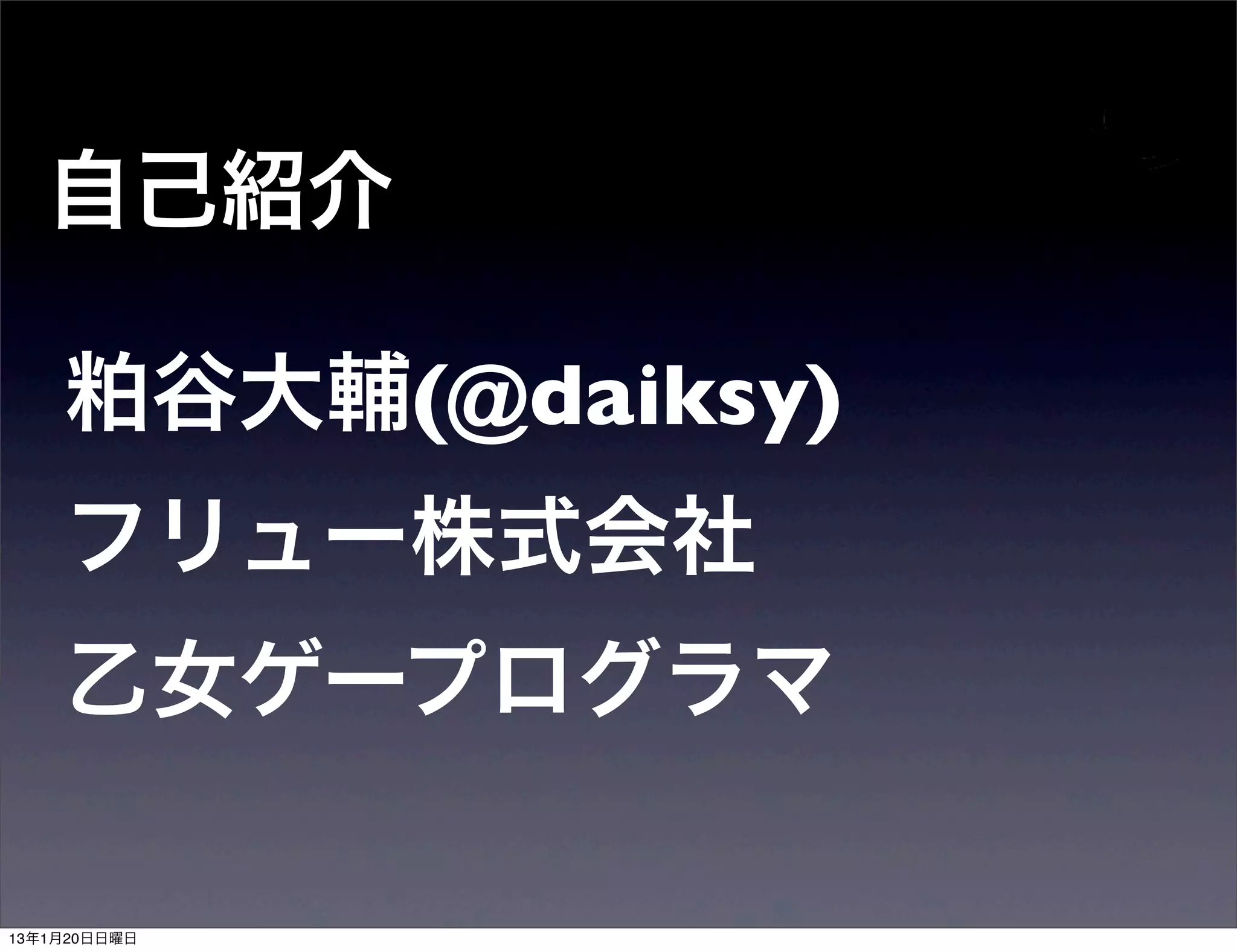 粕谷大輔(@daiksy) フリュー株式会社 乙女ゲープログラマ 13年1月20日日曜日