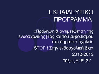 σε περιστατικά εκφοβισμού και βίας στο σχολείο.