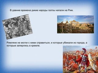 Документ описывает, как гуси спасли Рим от нападения галлов, обнаружив их попытку проникнуть на капитолий. Их крики разбудили римлян, что позволило им отбить атаку и прогнать врагов. В память о событии римляне учредили праздник, на котором жрецы приносили гусей в жертву.