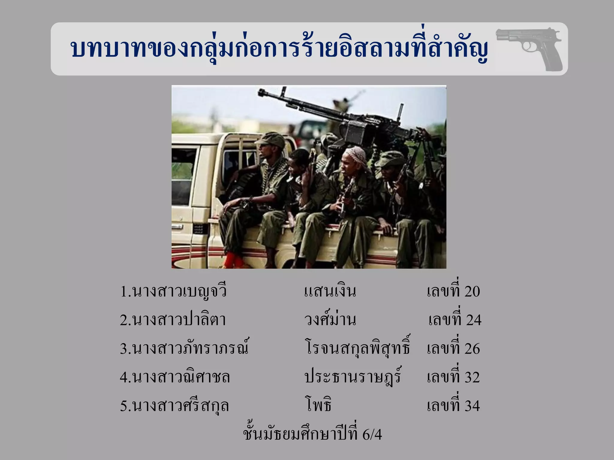 บทบาทของกลุ่มก่อการร้ ายอิสลามทีสาคัญ