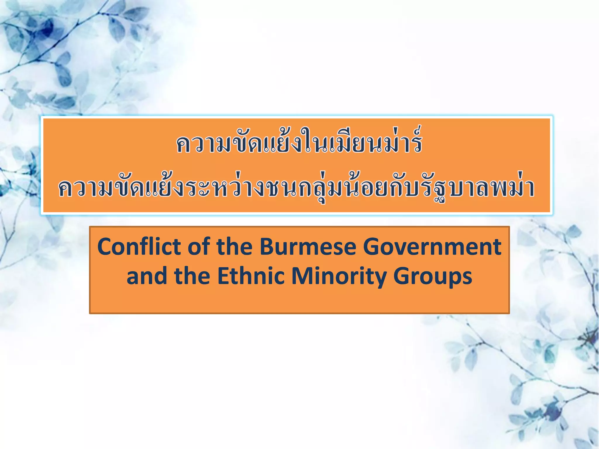 2.)ปัญหาความขัดแย้งระหว่างรัฐบาลพม่าและกองกาลังชนกลุ่ม