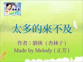 本文探讨了人生中常常出现的遗憾与来不及,如表达爱的歉意、未能实现的承诺以及失去亲人的痛苦。通过不同故事揭示在时间流逝中,我们容易忽视珍贵关系的重要性,提醒人们珍惜当下,及时表达感情。无论是与父母、伴侣还是朋友,都应在还来得及的时候倾情相待,避免未来的遗憾。