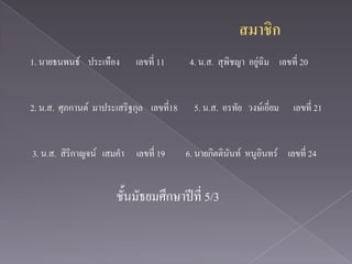 1. นายธนพนธ์ ประเทือง เลขที่ 11 4. น.ส. สุพิชญา อยู่ฉิม เลขที่ 20