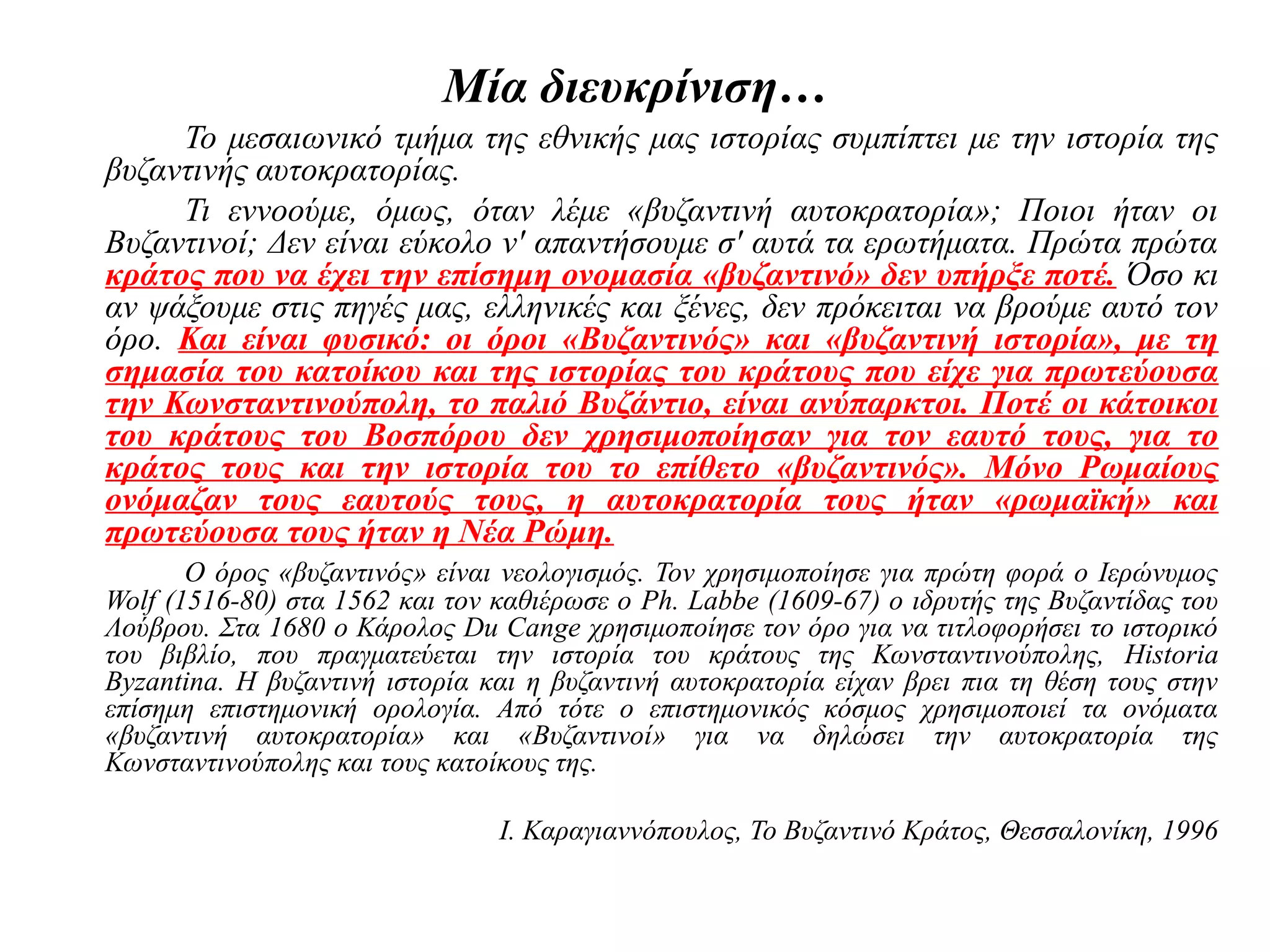 Τι εννοούμε, όμως, όταν λέμε «βυζαντινή αυτοκρατορία»; Ποιοι ήταν οι