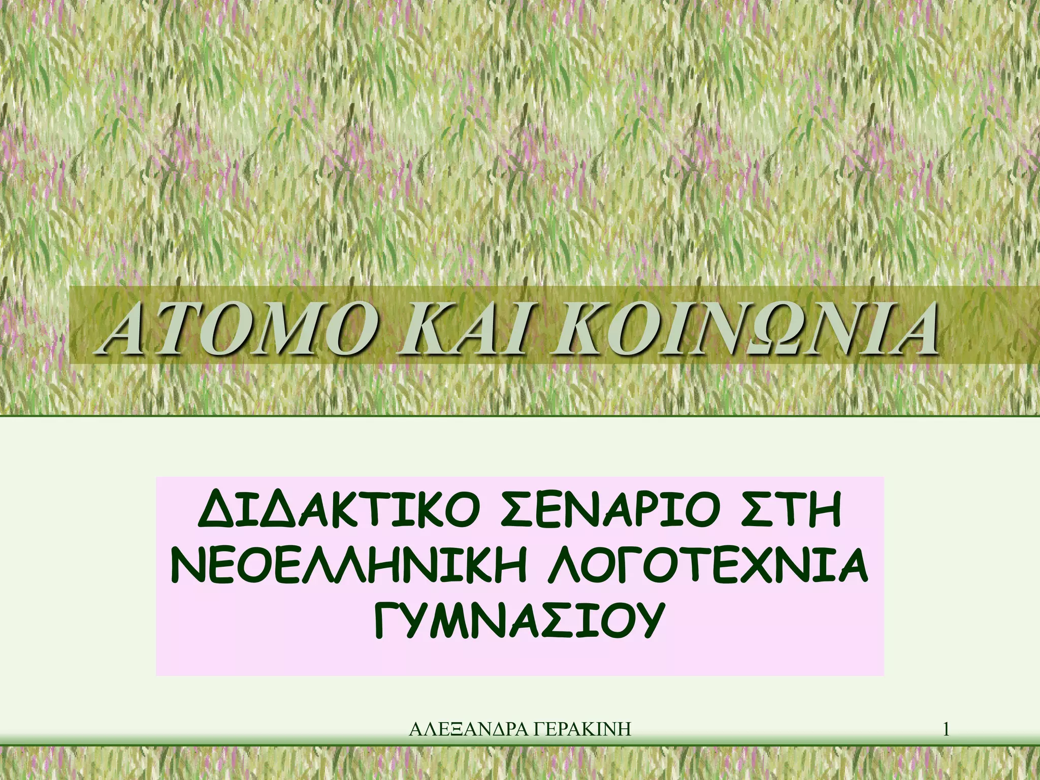 Σενάριο: Άτομο και κοινωνία, Ελένη Χοντολίδου