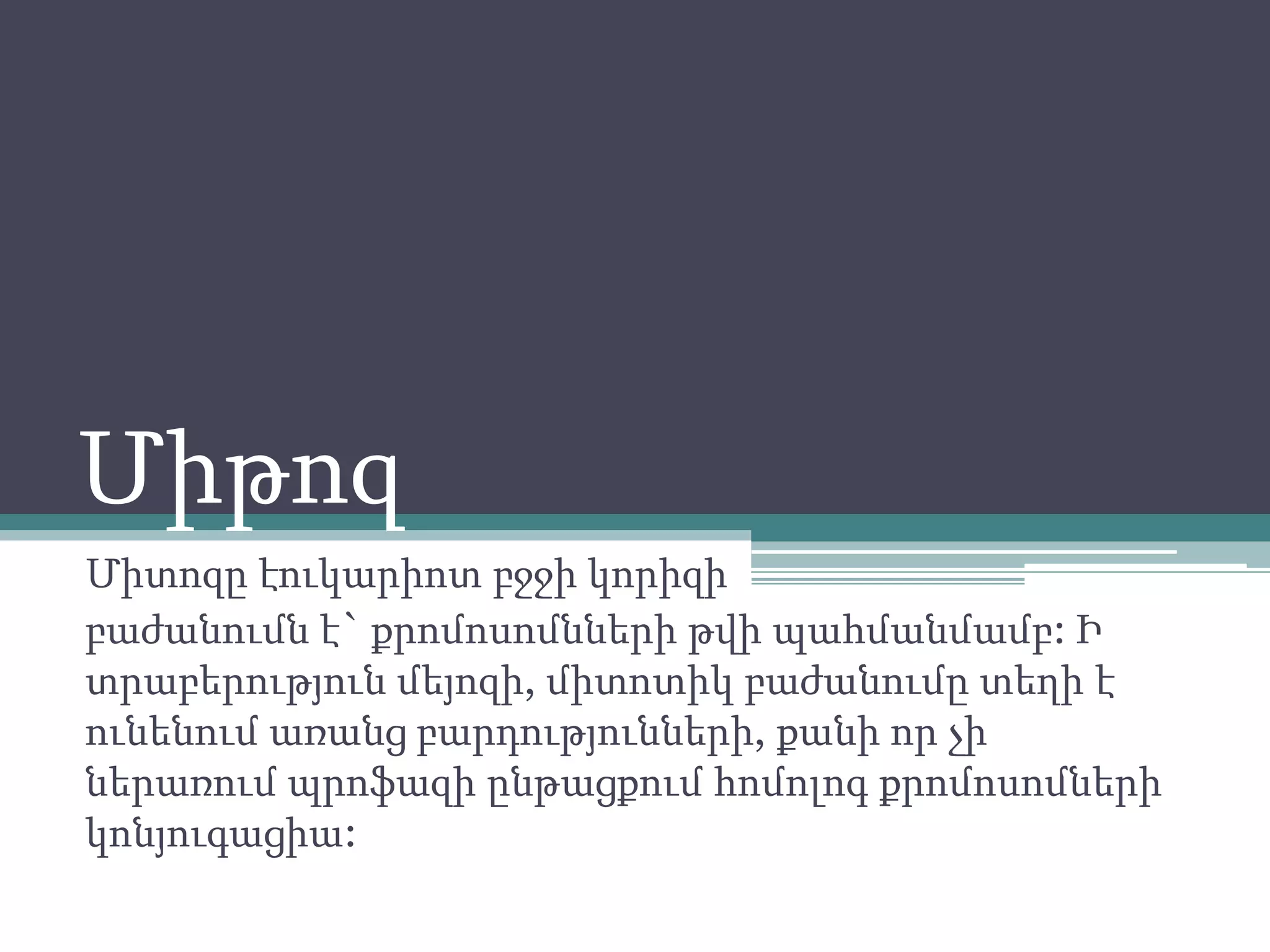 բաժանումն է` քրոմոսոմնների թվի պահմանմամբ: Ի