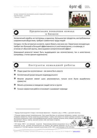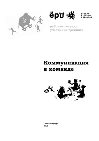 Документ представляет собой учебную тетрадь для тренинга по коммуникации в команде, проводимого в Санкт-Петербурге в 2013 году. Основное внимание уделяется принципам командной работы, развитию коммуникативных навыков и созданию сплоченной команды для достижения высоких результатов. Тренинг акцентирует важность взаимодействия и обмена мнениями для эффективного решения задач в коллективе.
