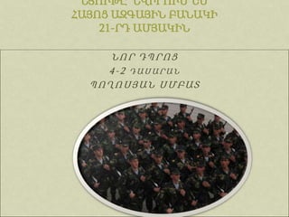 կոչում:Դասակի հրամանատար է: Զինվորներին սովորեցնում է