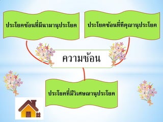 คนสุ ดท้ายกาลังเล่นกันอยู ่ ค) คนที่ประพฤติดยอมมีความเจริ ญรุ ่งเรื อง ี่ ง) คนรักความก้าวหน้ากาลังอ่านหนังสือสอบ