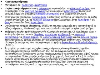 • Η ηλεκτρική ενέργεια είναι θ ενζργεια που μεταφζρει το θλεκτρικό ρεφμα, που