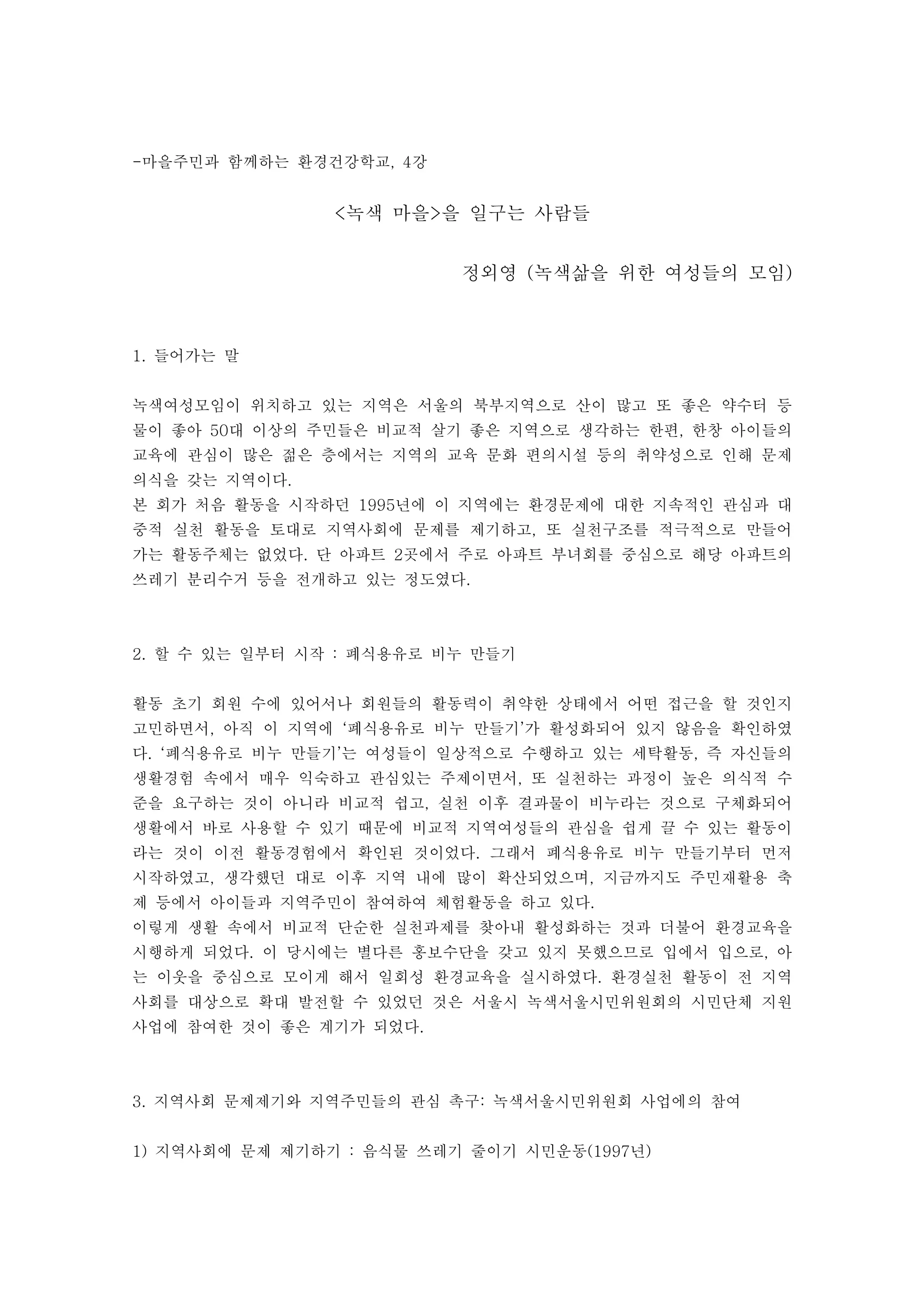 3. 지역사회 문제제기와 지역주민들의 관심 촉구: 녹색서울시민위원회 사업에의 참여