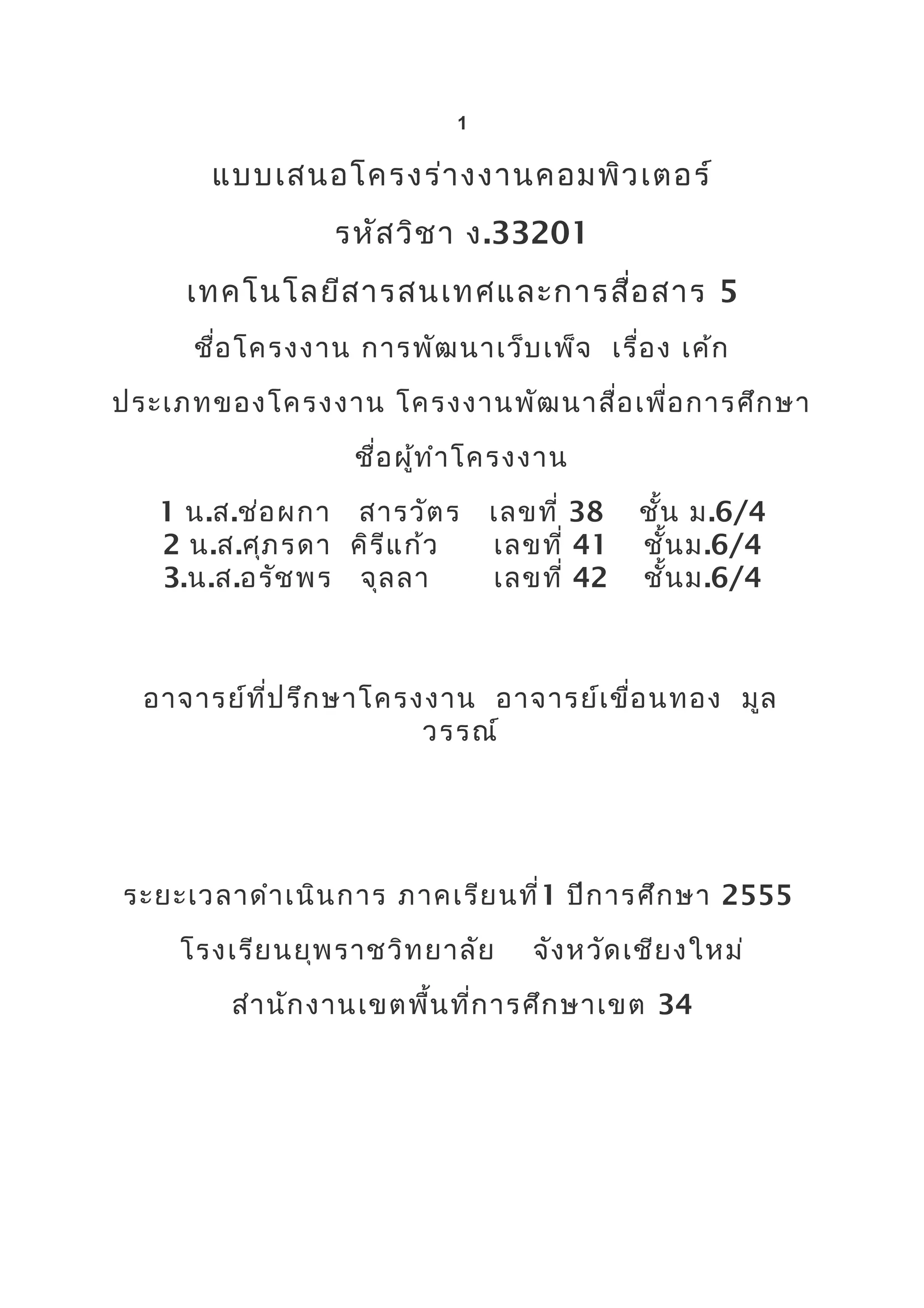 ชือ โครงงาน การพัฒ นาเว็บ เพ็จ เรื่อ ง เค้ก