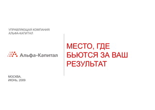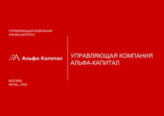 Документ представляет собой описание деятельности управляющей компании 'Альфа-капитал', акцентируя внимание на её доверительном управлении активами и инвестициях в интернет-компании. Указаны достижения и награды компании, а также статистика по активам под управлением и предлагаемым инвестиционным продуктам. 'Альфа-капитал' также выделяет свои ключевые преимущества, такие как надежность, индивидуальный подход к клиентам и высокое качество сервиса.